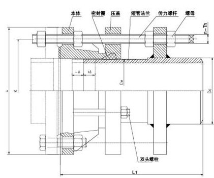 傳力接頭是泵、閥門(mén)等設(shè)備與管道連接的新產(chǎn)品,通過(guò)全螺栓把它們連接起來(lái),使其成為一個(gè)整體,并有一定的位移量,這樣就可以在安裝維修時(shí),根據(jù)現(xiàn)場(chǎng)安裝尺寸進(jìn)行調(diào)整,在工作時(shí),可以把軸向推力傳還至整個(gè)管道。這樣不僅提高工作效率,而切對(duì)泵、閥們等設(shè)備起到一定保護(hù)作用。