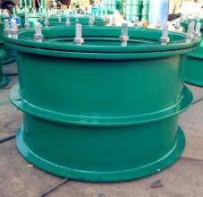 7:02S404型柔性防水套管用于與腐蝕性介質(zhì)接觸時(shí),設(shè)計(jì)應(yīng)根據(jù)介質(zhì)性能及防腐要求,另行選擇適用的耐腐材料。